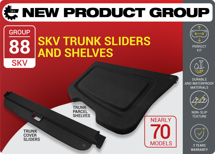 New product groups in SKV offer - Drive shafts, trunk sliders and shelves and many other from different product groups, including new models of AC condensers, oil coolers, thermostats and brake calipers.