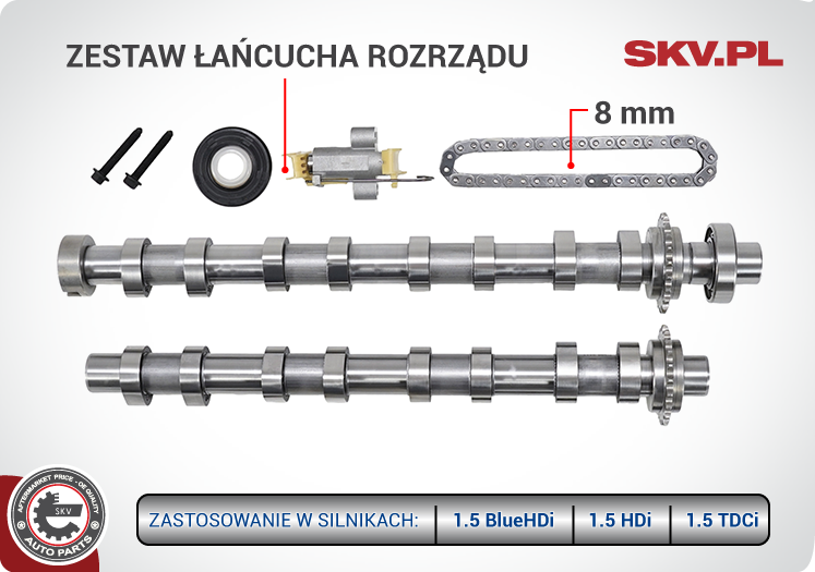 Kompletny zestaw do silników: 1.5 BlueHDI; 1.5 HDI; 1.5 TDCI zawiera: